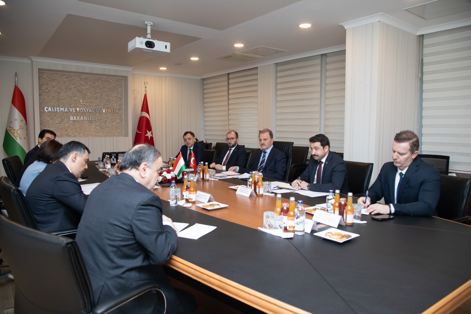 Çalışma ve Sosyal Güvenlik Bakan Yardımcısı Dr. Adnan Ertem, ziyaret öncesi Tacikistan heyetiyle Çalışma ve Sosyal Güvenlik Bakanlığında toplantıda bir araya geldi.
